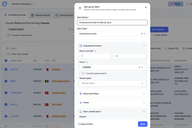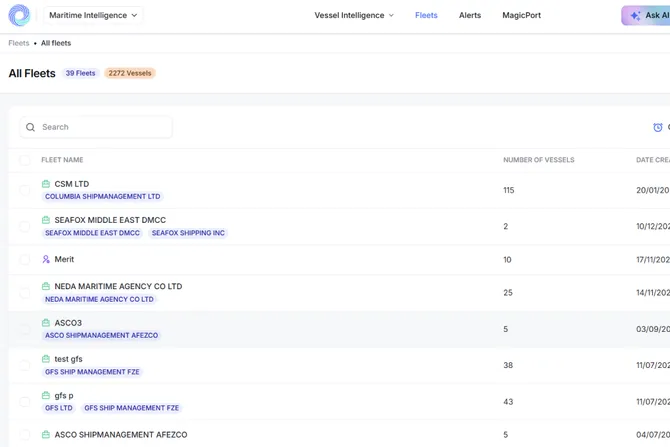 Find vessels and access their detailed information. Create and track fleets with smart alerts to monitor port calls, vessel movements, and events in real-time. Use advanced analytics and automation tools to enhance visibility and efficiency for your vessel and port operations.